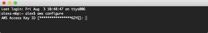 Go to the terminal and run aws configure. You will be asked to fill in credentials from the .csv file you downloaded during the IAM user creation process. Enter you Access Key ID and Secret Access Key. The other fields are optional and you can simply hit “Enter”.