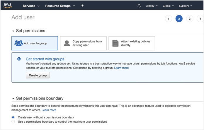 First, we need to the install AWS command line tool by following this link. Once it’s ready, go to the IAM tab in AWS, then Users, and Add user. Make sure you check Programmatic access, because we don’t need extra permissions for this user despite publishing website content.