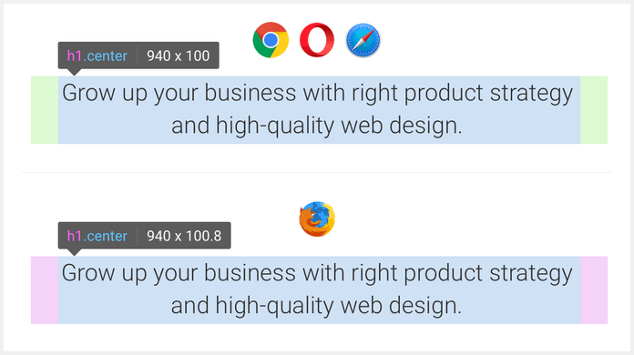 The takeaway here is that Firefox uses more accurate line-height values, like 1.33333. If that doesn’t concern you, stick with pretty and clean numbers, like 1.3.