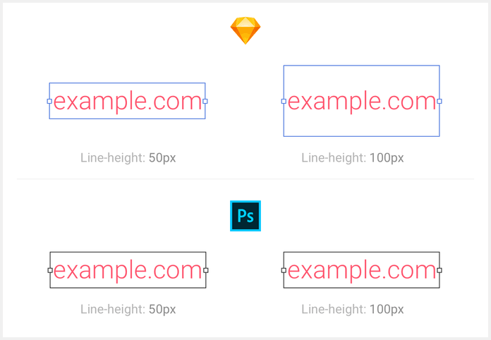 One advantage of using Sketch is that it renders text objects with the same logic. Photoshop element sizes do not depend on line-height.